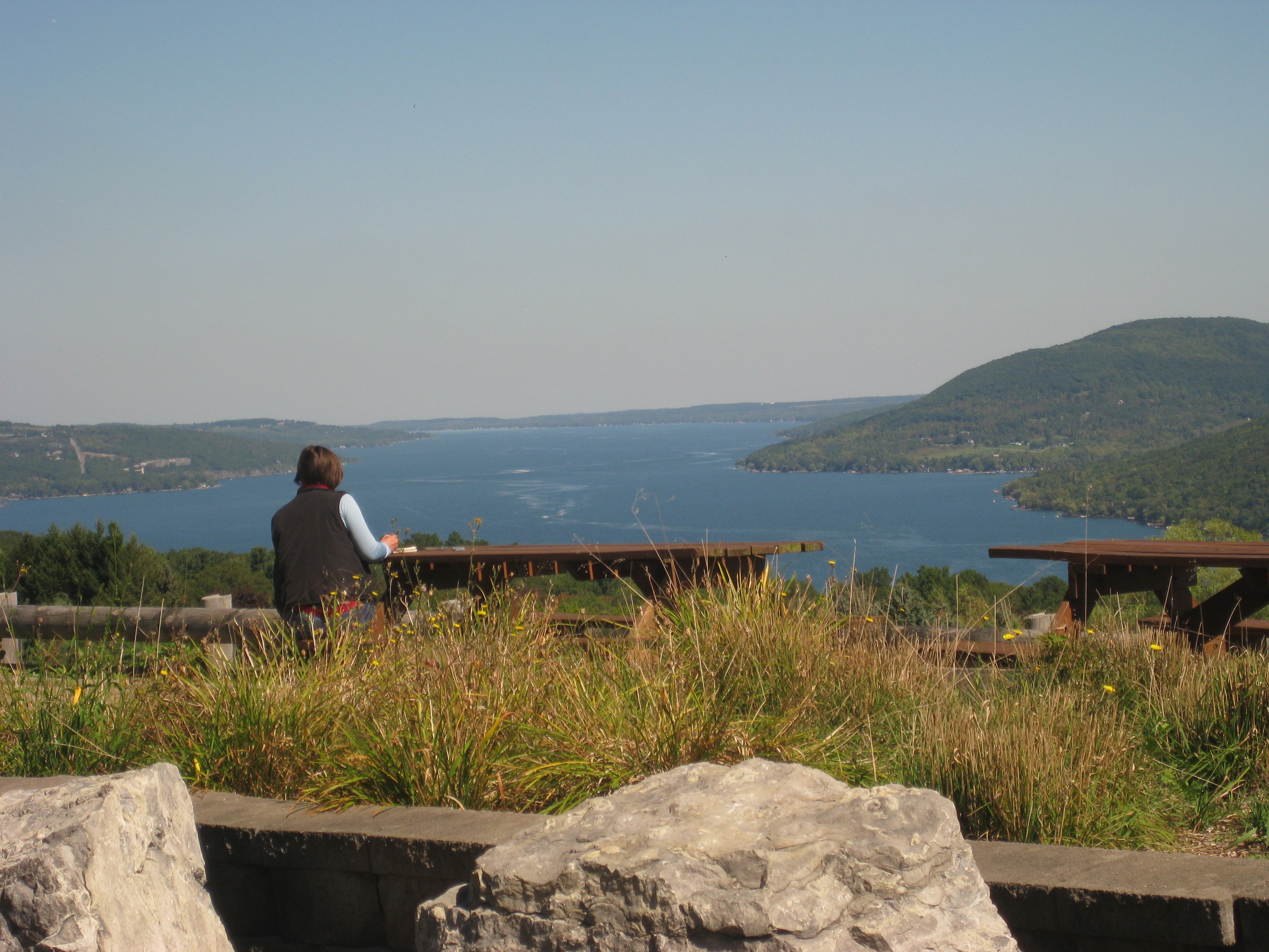Naples is a 4-hour drive from our part of PA, so it’s a little too far for an enjoyable day trip. We decided to overnight there, but because we had just been traveling in eastern PA, I suggested we save some money by camping instead of getting a room at a hotel or B&B. So we booked a site at Stony Brook State Park, packed up my tent and a cooler, and headed north!